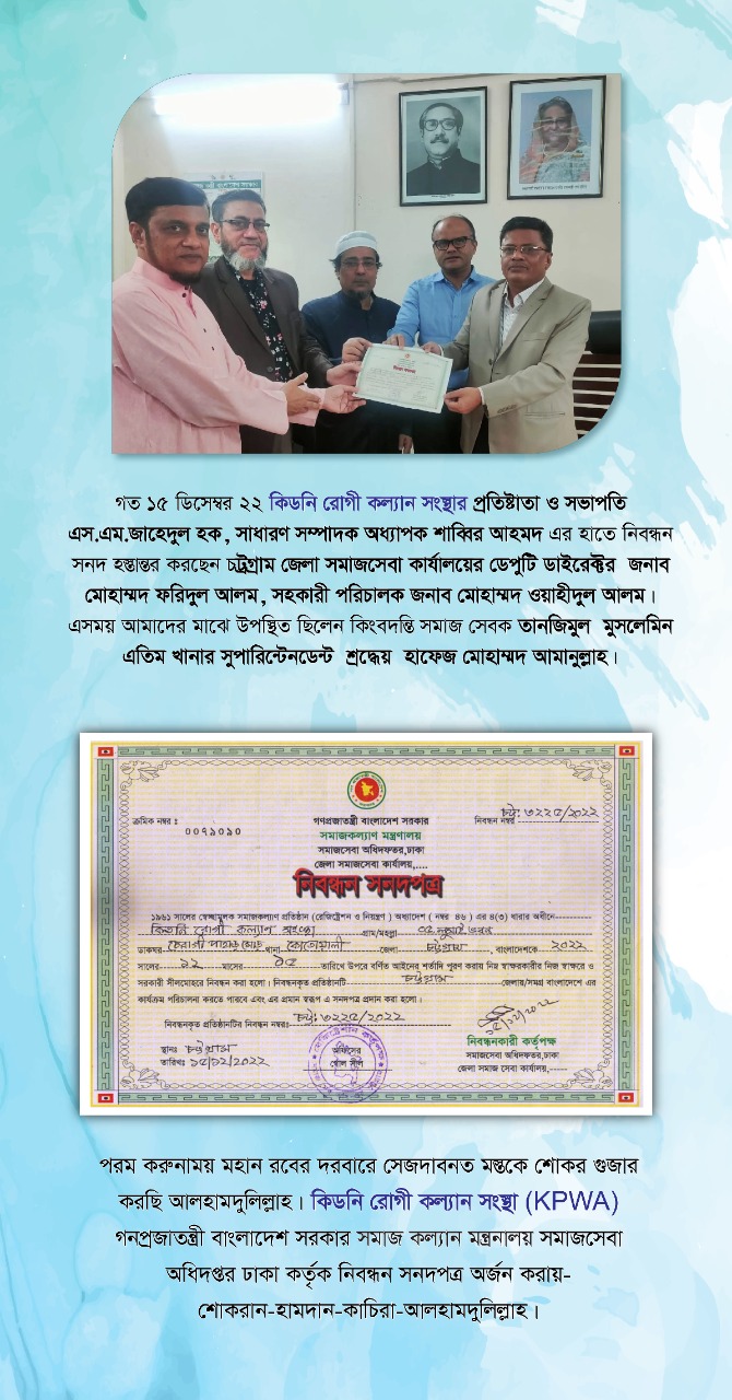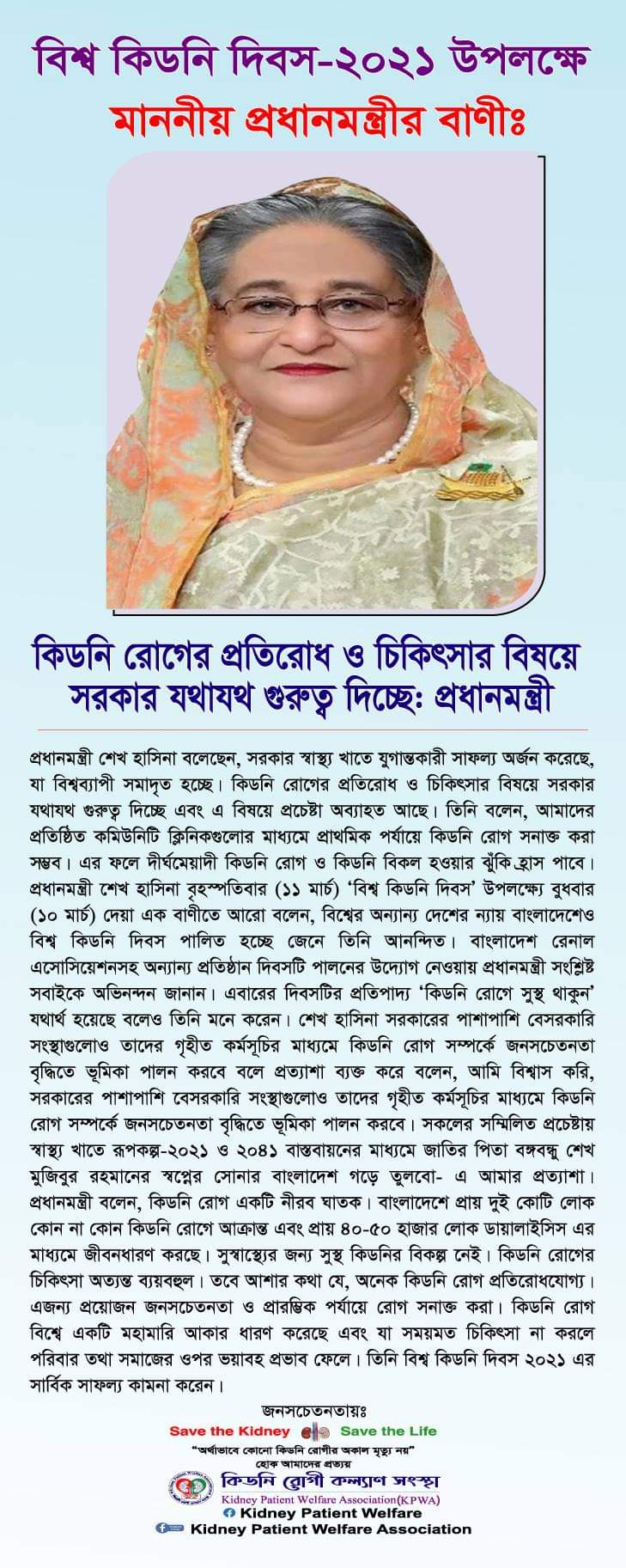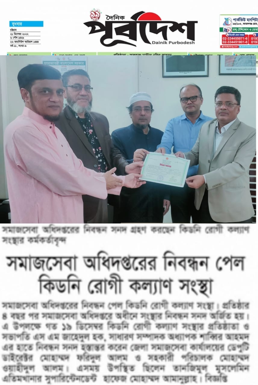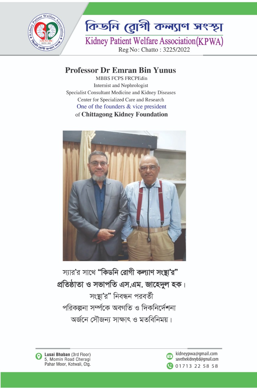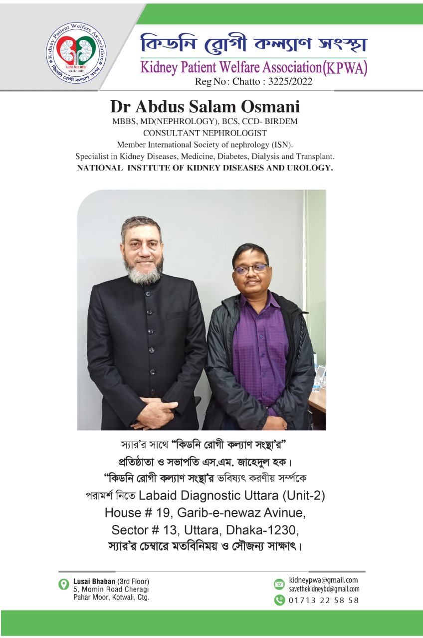 কিডনি সুরক্ষা ও রোগ প্রতিরোধের একমাত্র উপায় জনসচেতনতা।