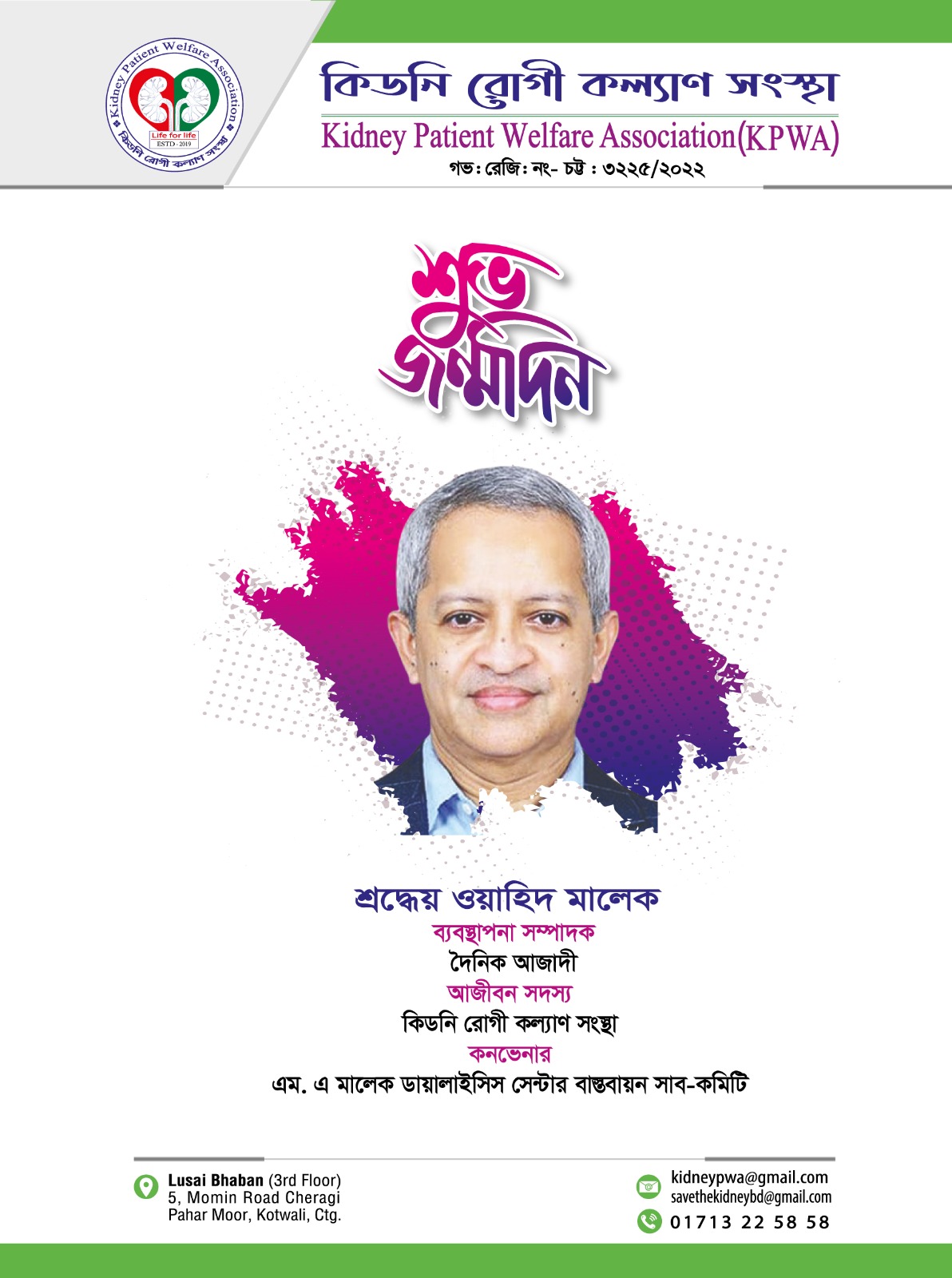 কিডনি সুরক্ষা ও রোগ প্রতিরোধের একমাত্র উপায় জনসচেতনতা।